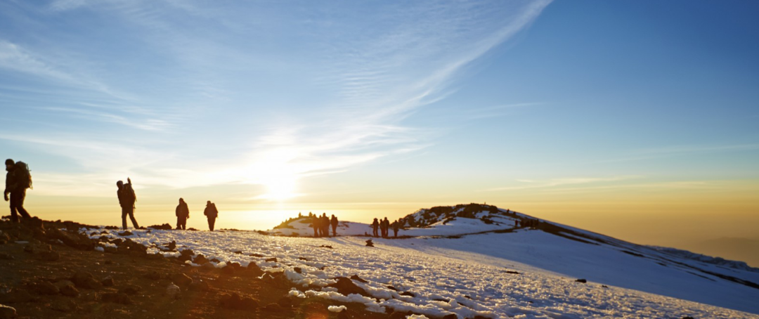 The beginning of the last ascent is made in the wee hrs of the morning while the scree is still frozen. Climb the very steep part of the route to GILMANS POINT (most difficult and tiring part). UHURU PEAK is reached within an hour's walk along the crater rim. (19,344ft). Start the walk along the crater’s rim. (19,344ft). Start the descent to Horombo hut for overnight
